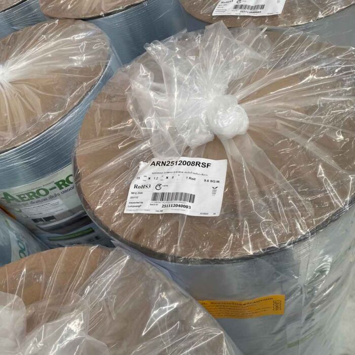 แอร์โร-รูฟ หรือ AERO-ROOF ผลิตภัณฑ์จากโรงงาน Aeroflex วัสดุเป็นยางสังเคราะห์ EPDM ที่ถูกพัฒนามาใช้กับงานหลังคากันความ ปิดทับด้วยแผ่นอลูมิเนียมฟอยล์ชนิดมีเส้นใยแก้วเสริมแรง เพื่อเพิ่มความแข็งแรงให้กับฉนวน