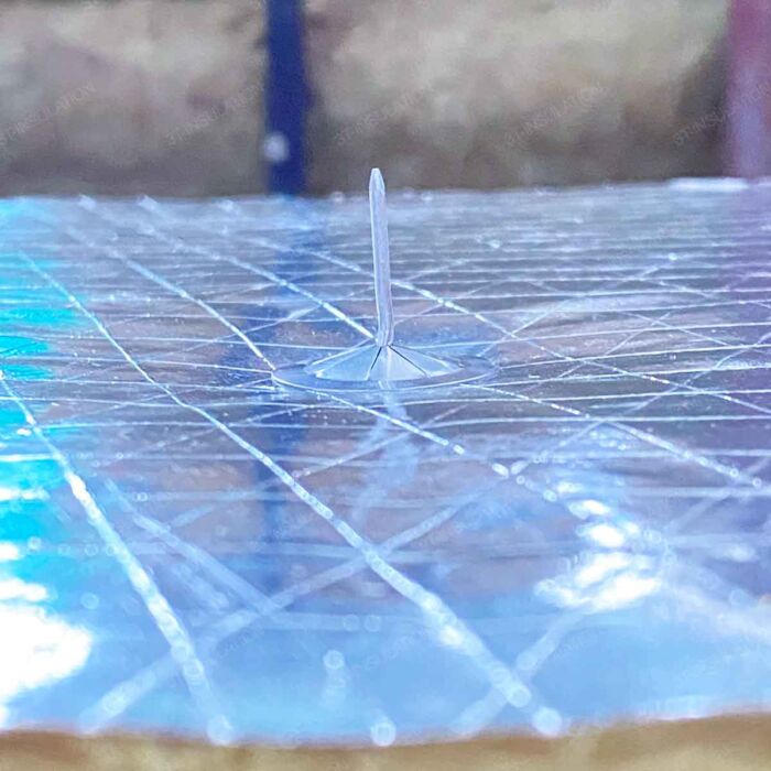 ASAWA Spring Washer for insulation pin lock, designed for use with self-adhesive insulation pins or perforated base insulation pins to secure thermal insulation. Made of stainless steel, pressed into a washer shape with serrated center. Once the pin is inserted, the washer locks permanently.