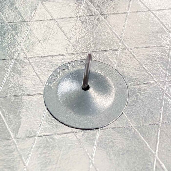 ASAWA Washer Insulation Pin Retainer Cap for use with Self Adhesive Insulation Pins or Perforated Base Insulation Pins to secure thermal insulation in roofing, duct systems, and thermal or acoustic wall insulation.