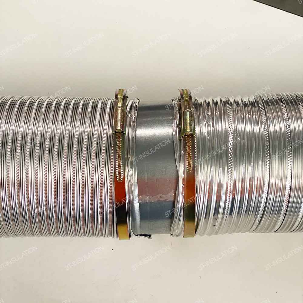 ข้อต่อท่อลมอ่อนและกึ่งแข็ง (Flexible Duct GI Connector) คือ ข้อต่อท่อตรงผลิตจากสังกะสี ใช้สำหรับต่อยืดความยาวของท่อลม ใช้งานร่วมกับเข็มขัดรัดท่อลม หรืออลูมิเนียมเทป เพื่อยึดท่อลมกับข้อต่อ