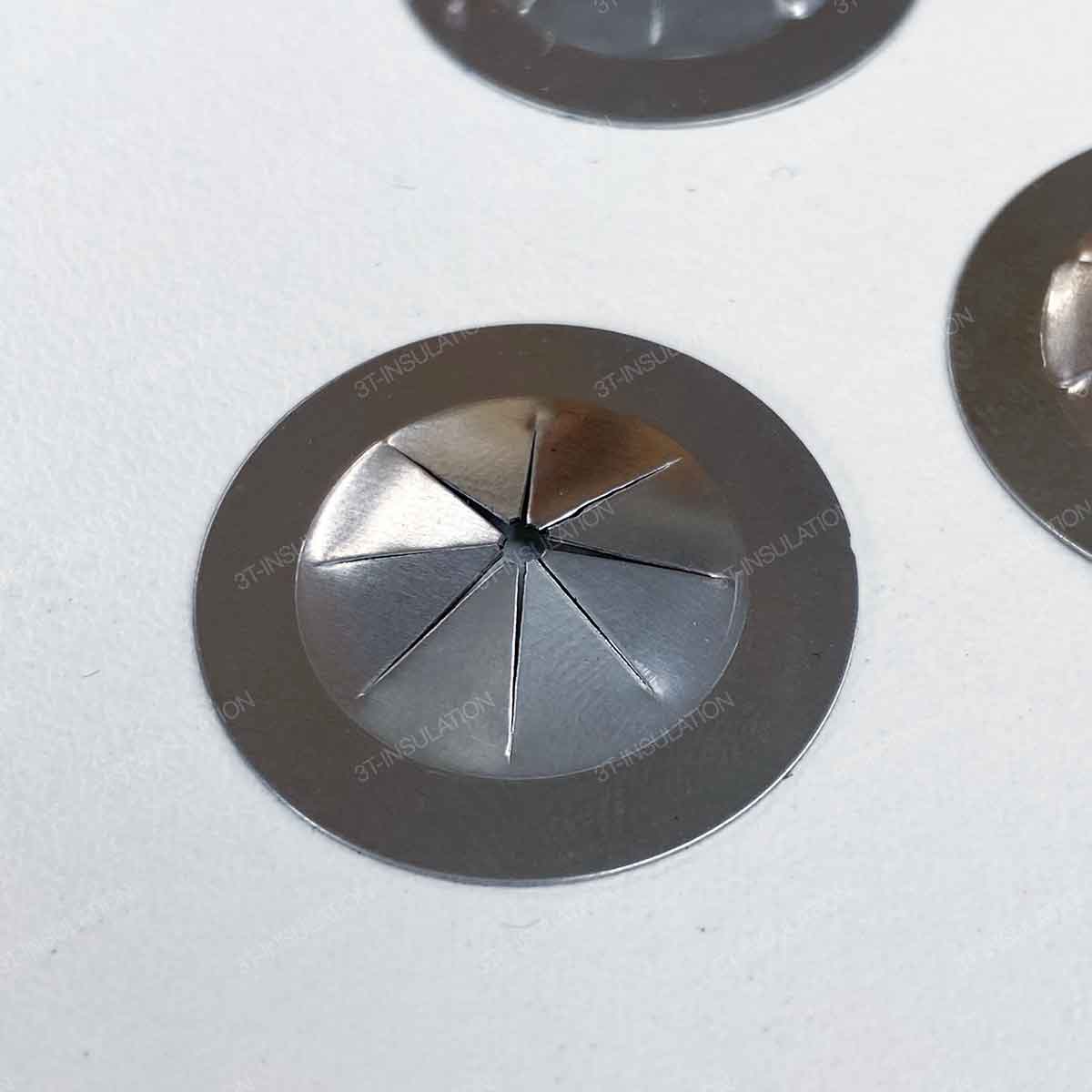 ASAWA Spring Washer แหวนสปริงล็อกหมุดหนามเตย สำหรับใช้งานร่วมกับหนามเตยเทป (Self Adhesive Insulation Pin) หรือ หนามเตยชนิดกาวตะปู (Perforated Base Insulation Pin) เพื่อยึดฉนวนกันความร้อน ผลิตขึ้นจากสแตนเลส ปั๊มขึ้นรูปออกมามีลักษณะเป็นแหวนที่มีรอยแฉกตรงกลาง เมื่อสอดหนามเตยผ่าน แหวนจะล็อกจนไม่สามารถดึงออกได้